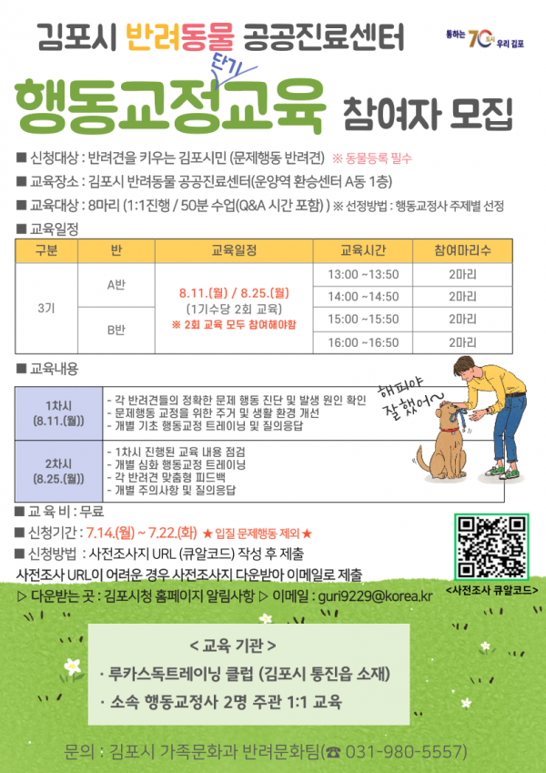 김포시, 2025년 반려동물 공공진료센터 행동교정교육 참여자 모집