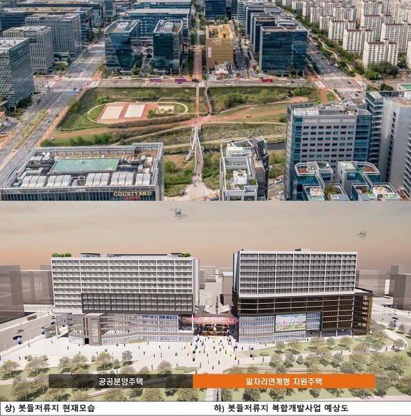 ‘판교 봇들저류지 복합개발사업’은 분당구 삼평동 667번지 일대 봇들저류지의 유수지 기능은 유지하면서 상부 공간을 복합개발해, 주택 공급이 부족한 판교테크노밸리에 청년 근로자를 위한 주거시설을 공급하고 지역경제 활성화 및 개발이익의 지역사회 환원을 도모하는 사업이다.