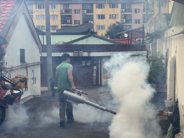 특히 빈집 주변, 인적이 드문 골목, 주택가 틈새 공간까지 꼼꼼하게 방역을 실시했으며 휴대용 연무기의 강한 분사력을 활용해 해충이 서식하기 쉬운 장소를 정밀하게 소독하는 데 주력했다.