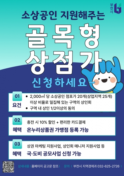 [금요저널] 부천시는 전통시장과 상점가에 준하는 지원 혜택을 받을 수 있는 ‘골목형상점가’ 지정을 확대하기 위해 완화된 요건을 바탕으로 홍보를 강화하고 있다고 18일 밝혔다.