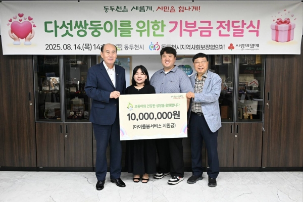 [금요저널] 동두천시 지역사회보장협의체는 지난 14일 다섯쌍둥이 가정의 건강한 성장과 안정적인 양육 환경 조성을 위해 후원금 1천만원을 전달했다.