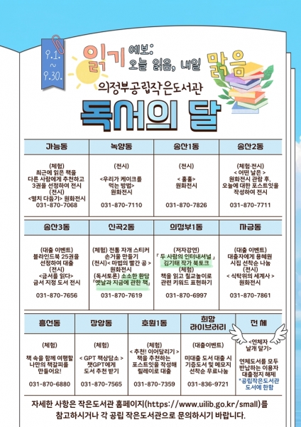 의정부시, 공립 작은도서관 9월 독서의 달 행사 운영