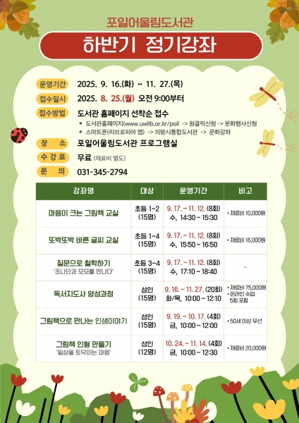 포일어울림도서관 관계자는 “도서관의 가을 프로그램과 함께 즐거운 독서와 마음 성장의 시간을 갖길 바란다”고 말했다.