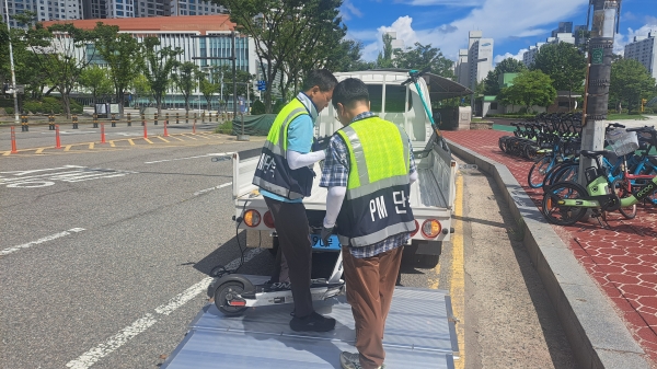 신고된 개인형 이동장치 정보는 즉시 운영업체에 전달되며 업체가 1시간 이내 수거하지 않을 경우 곧바로 견인기동반을 통해 견인된다.
