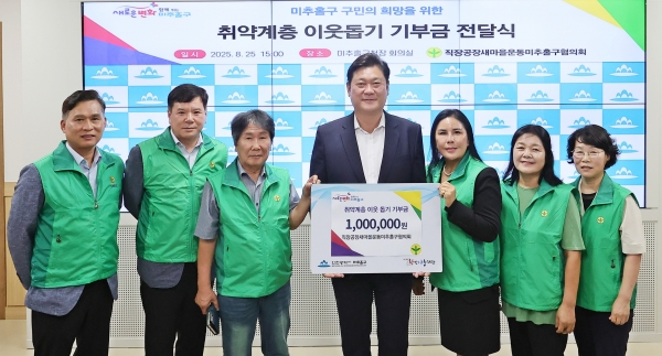 [금요저널] 인천 미추홀구새마을회는 지난 25일 구청장실에서 산하 직장공장새마을운동미추홀구협의회 주관으로 관내 취약계층을 위한 기부금 100만원을 미추홀구에 전달했다.