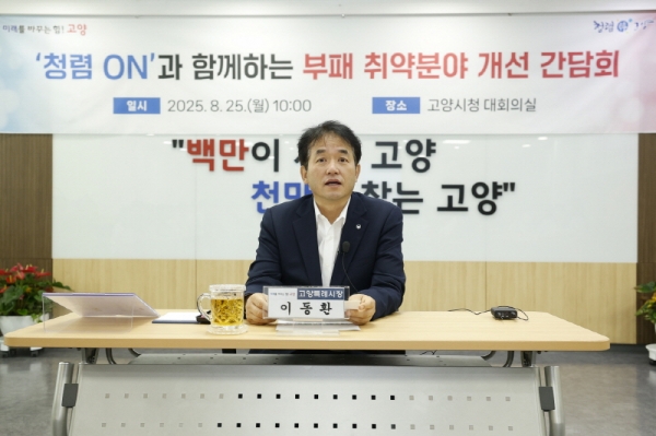 [금요저널] 고양특례시는 지난 25일 7급 이하 공직자로 구성된 ‘청렴 ON’과 함께 조직 내 부패 취약분야 개선을 위한 청렴 간담회를 개최했다고 밝혔다.