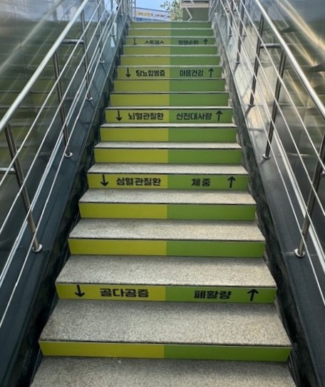 건강계단은 계단 이용을 권장하는 문구와 시각적 디자인을 결합한 형태로 시민의 관심을 끌고 생활 속 건강 습관을 확산하는 건강환경 조성 사업 중 하나다.