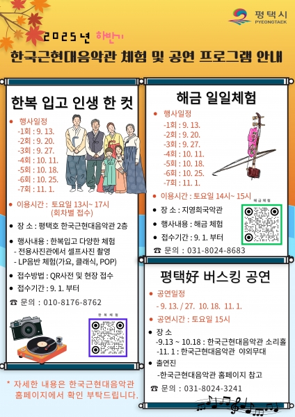 프로그램 참여는 정보무늬를 활용한 사전접수와 현장 참여 모두 가능하며 세부 일정과 프로그램 내용은 한국근현대음악관 누리집과 공식 인스타그램에서 확인할 수 있다.