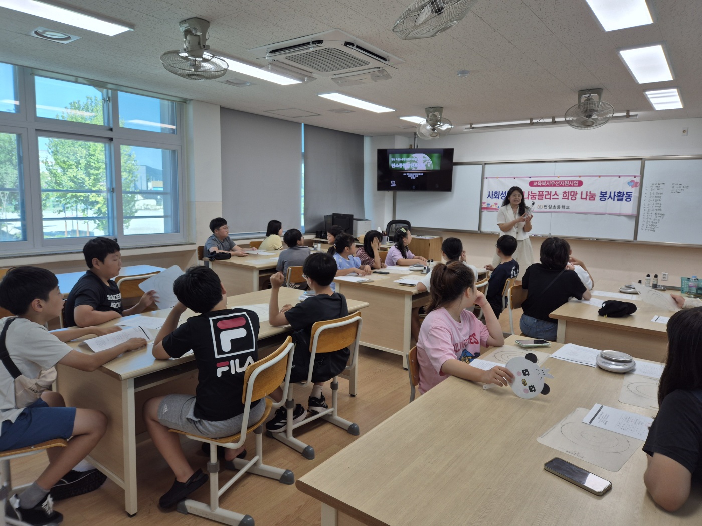 나눔플러스 봉사 동아리 학생들은 이산화탄소의 증가로 지구가 열을 흡수하여 지구 표면이 따뜻해 지는 지구온난화에 대한 원리를 배우고 제로웨이스트를 실천하여 지구를 보호하기 위해서 우리가 할 수 있는 작은 실천으로 더운 지구 살리기에 동참하였다.