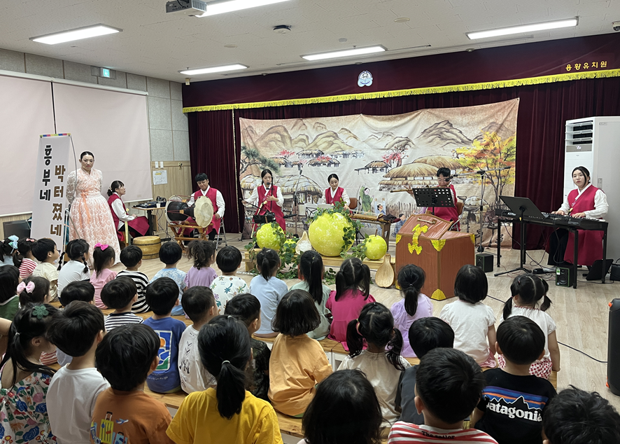○ 용황유치원(원장 강성애)은 8월 27일(수)에 강당에서 ‘찾아오는 국악공연’행사를 진행하였다. 이번 행사에서는 유아들의 활기찬 웃음소리와 흥겨운 국악 선율로 가득 찼다.