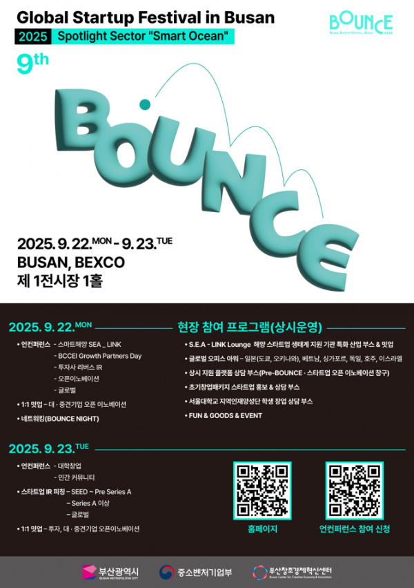 [금요저널] 부산시는 오는 9월 22일 23일 양일간 벡스코에서 지역 창업생태계를 연결하는 부산 대표 세계적 창업 행사인 ‘바운스 2025’를 개최한다고 밝혔다.