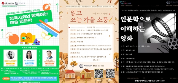 [금요저널] 안산시 월피예술도서관은 9월을 맞아 서울예술대학교와 협력해 ‘지역사회와 함께하는 예술 인문학’ 및 ‘하반기 평생교육 프로그램’ 등 2개 프로그램을 운영한다고 29일 밝혔다.