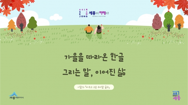 [금요저널] ‘가을을 따라온 한글, 그리는 말, 이어진 삶’ 세종시가 한글날과 ‘2025 한글 국제 프레 비엔날레’ 개최를 맞아 시민 참여를 거쳐 선정한 9∼10월 ‘바르고 고운 우리말 글귀’를 발표했다.