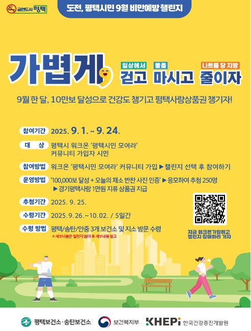 평택시, 9월 건강미션 ‘비만 예방 걷기 챌린지’ 추진