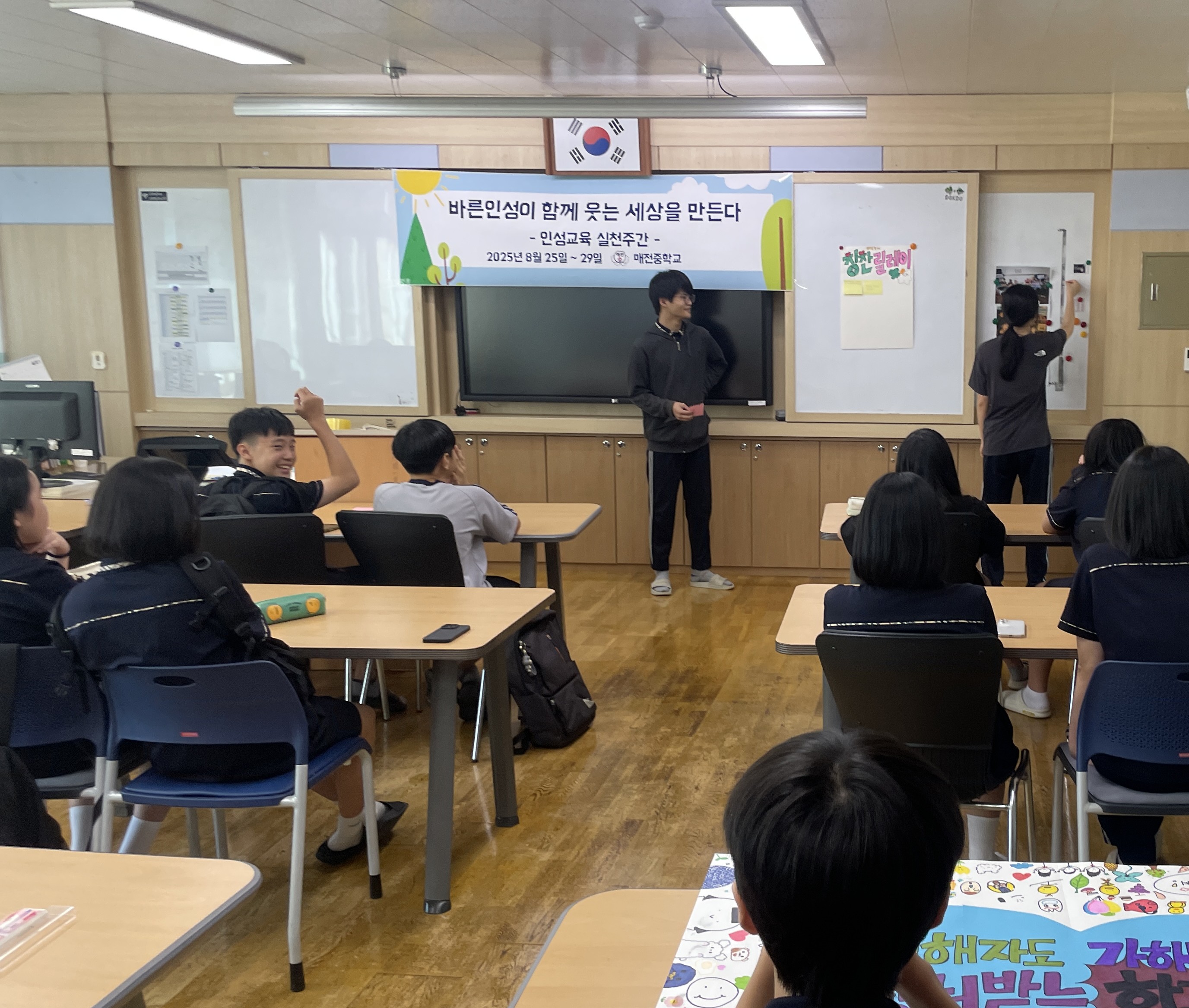 □ 지난 25일부터 29일까지 ‘인성교육실천주간’을 맞아 매전중학교(교장 김기빈)에서 다양한 행사가 진행 되었다. 학생들은 가족 사랑의 날 프로그램을 마련하여 감사 효도 편지 쓰기 등의 다양한 실천 과제들을 수행한 후 인증샷을 남기고, 사제동행 감사와 칭찬 릴레이를 실시하는 등의 다양한 프로그램으로 올바른 품성을 기르고 실천적 인성을 함양하는 뜻깊은 날을 보냈다.