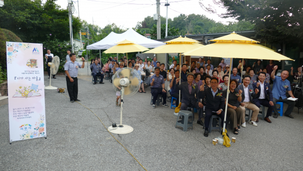 삶의 기록이자 공동체 기억의 모음집이기도 한 ‘시가 사는 마을’ 출판 기념행사는 1부 내외빈 축사와 격려, 감사패 증정에 이어 2부에서는 주민의 시 낭송과 사연을 풀어내는 북 콘서트로 진행됐다.