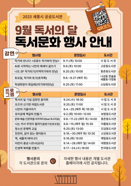 책 향기 가득한 9월, 세종시 도서관에서 만나요