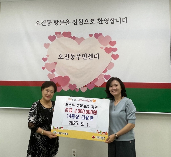 김용란 의왕시 오전동 14통장, 200만원 기부