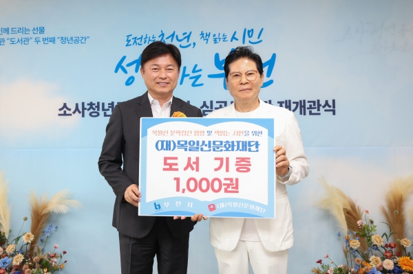[금요저널] 부천시는 지난 1일 심곡도서관 재개관식에서 ‘재단법인 목일신문화재단 도서 기증식’을 열고 어린이와 시민을 위한 도서 나눔을 진행했다.