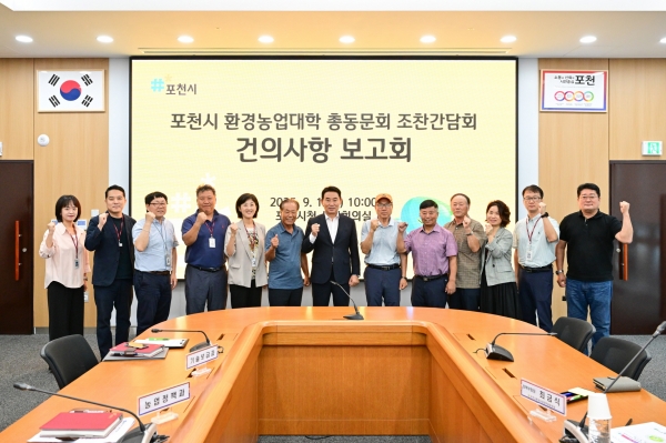 [금요저널] 포천시는 지난 1일 시정회의실에서 ‘환경농업대학 총동문회 조찬 간담회 건의 사항 보고회’를 개최했다.