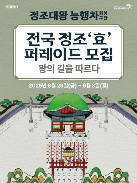 [금요저널] 화성특례시는 오는 27일부터 28일까지 개최되는 ‘2025 정조효문화제·정조대왕능행차 공동재현’을 앞두고 시민이 직접 참여하는 다양한 행렬 참가자를 모집한다고 2일 밝혔다.