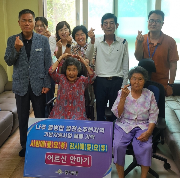 이계택 빛가람동 노인회장은 “안마기를 기증해 주신 따뜻한 마음은 경로당 회원들에게 큰 위로가 될 것”이라며 “어르신의 건강하고 활기찬 여가 활동을 위한 관심과 나눔에 감사드린다”고 말했다.