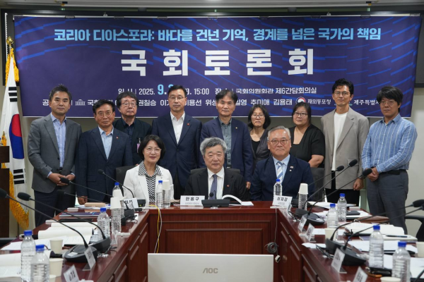 [금요저널] 국회 외교통일위원회 소속 이재강 의원을 비롯해 권칠승·이기헌·이용선·위성곤·정일영·추미애·김용태 의원과 재외동포청, 제주특별자치도가 공동주최한 ‘코리아 디아스포라: 바다를 건넌 기억, 경계를 넘은 국가의 책임’ 토론회가 9월 2일 국회의원회관 제6간담회의실에서 열렸다.