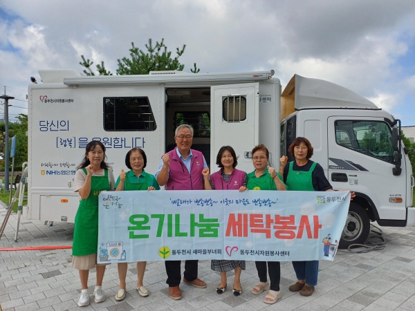 [금요저널] 동두천시 소요동 새마을부녀회는 지난 2일 동두천시종합자원봉사센터의 이동세탁 차량 지원을 받아 온기 나눔 세탁 봉사를 진행했다.