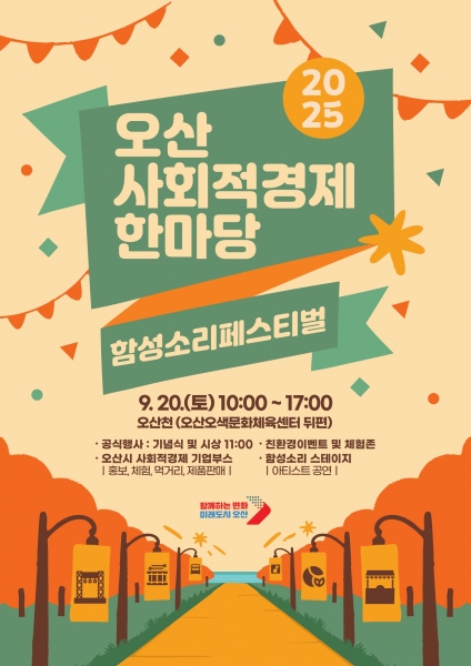 [금요저널] 오산시가 사회적경제기업과 함께 지역경제에 활력을 불어넣고 시민이 체감하는 상생 문화를 확산하기 위해 ‘2025 사회적경제한마당’을 연다.