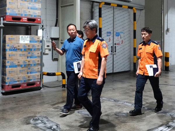 이날 현장안전지도에서는 △지하 저온·냉동창고 화재 시 진압·배연 곤란 요인 확인 △지게차 충전시설 등 전기안전관리 점검 △소방시설 정상 작동 여부 및 피난·대피로 확보 상황 △관계자 대상 화재 예방교육 및 자율 점검 강화를 중점적으로 진행했다.