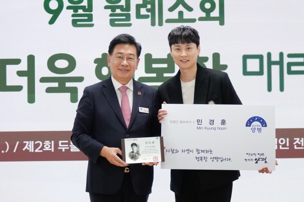 [금요저널] 양평군은 3일 군청 대회의실에서 열린 9월 월례조회에서 가수 민경훈을 양평군 홍보대사로 위촉했다.