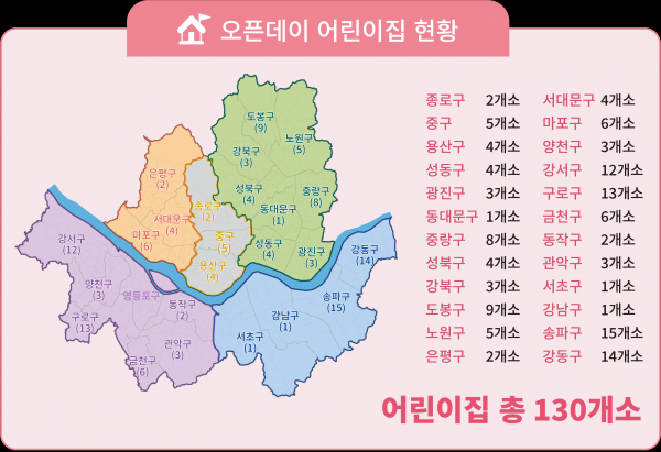 이번 ‘오픈데이’는 130개 어린이집에서 열리며 참여 어린이집은 ‘서울시 보육포털’ 누리집에서 확인할 수 있다.