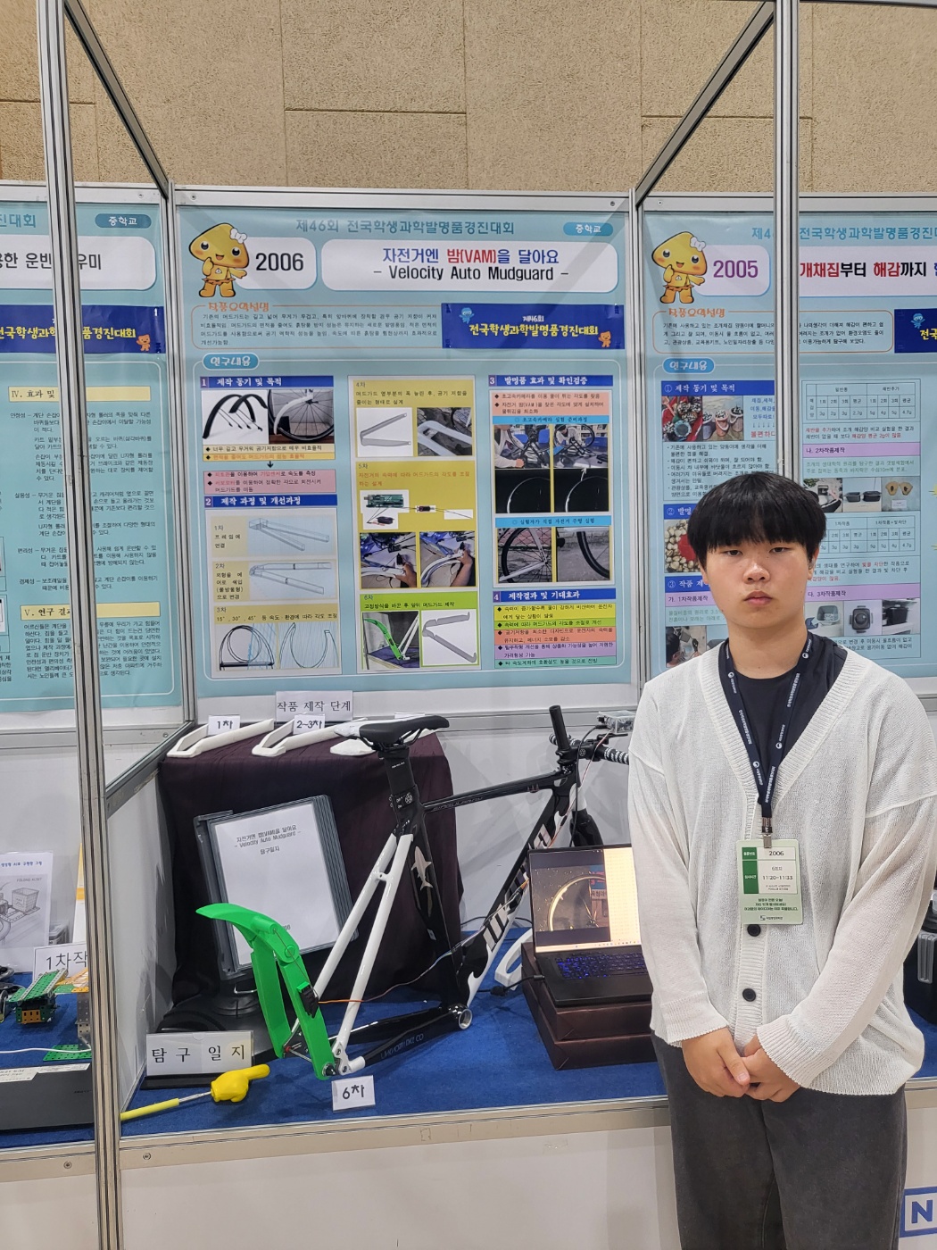 □ 김명준 학생의 발명품은 경기용 자전거 주행 시 발생하는 물 튀김과 오염 문제를 해결하기 위해 고안된 것으로, 경량성과 실용성을 동시에 갖춘 점에서 높은 평가를 받았다. 특히 기존 머드가드의 단점을 개선하고, 실제 경기 현장에서 적용할 수 있는 창의적인 아이디어라는 점에서 심사위원들의 호평을 받았다.