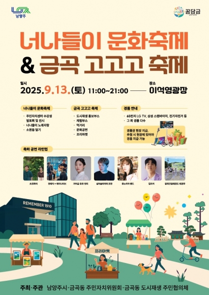 [금요저널] 남양주시는 오는 13일 이석영광장에서 ‘너나들이 문화축제 & 금곡 고고고 축제’를 개최한다고 3일 밝혔다.