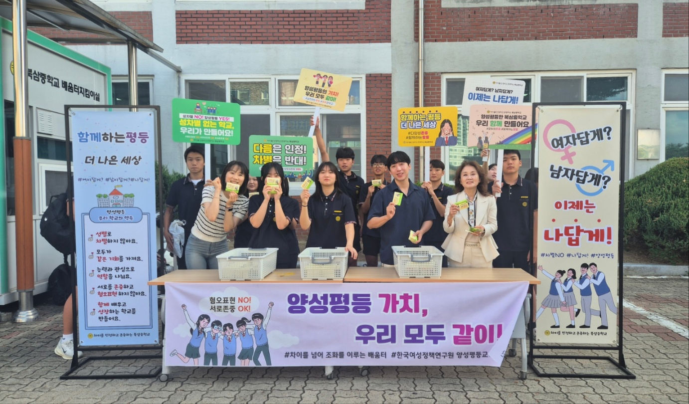 □ 특히 학생들이 직접 제출한 표어로 제작한 피켓을 활용한 캠페인은 더욱 뜻깊었다. ‘여자답게? 남자답게? 이제는 나답게’, ‘다름은 인정, 차별은 반대’, ‘차별 없는 학교, 우리가 만들어요’와 같은 구호는 등굣길을 환하게 밝히며 양성평등의 가치를 힘차게 전했다.