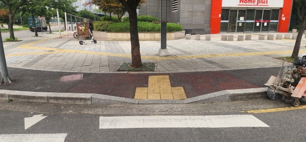이에 구는, 보도 턱을 넓고 완만하게 확장했으며 턱낮춤이 미비했던 횡단보도는 신규 공사와 함께 경계석을 새로 시공해 안전성을 높였다.