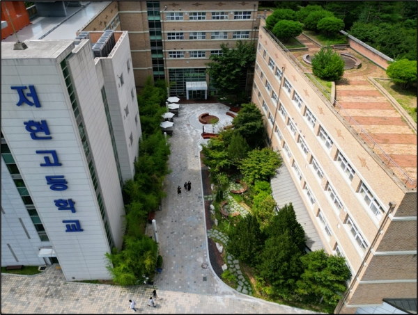 저현고등학교 학교숲에는 960㎡ 면적에 문그로우 등 13종 611주의 다양한 수목과 수크렁 등 2종 900본의 초화류를 식재했다.