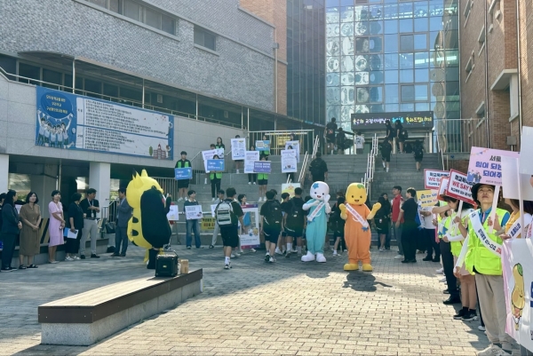 참여자들은 캠페인 문구가 들어간 팻말과 현수막을 들고 구호를 외치며 등굣길 학생들을 대상으로 학교폭력에 대한 경각심을 높이는 활동을 적극적으로 펼쳤다.