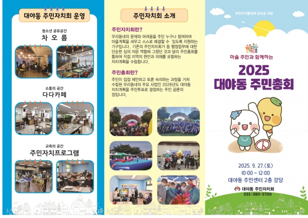 [금요저널] 시흥시 대야동 주민자치회는 오는 9월 27일 대야동 주민센터 2층 강당에서 ‘2025년 대야동 주민총회’를 개최한다.