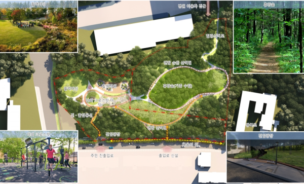 구는 훼손된 토지를 복원하고 고사목·전도목 등 방치된 수목을 정비해 산책로 잔디마당, 테마 정원 등 복합 문화공간으로 새롭게 조성했다.