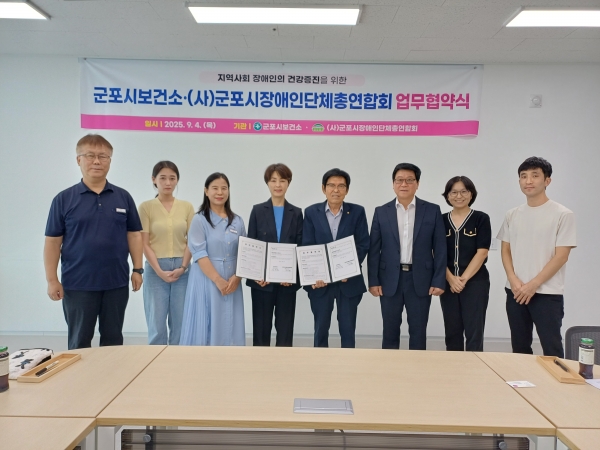 [금요저널] 군포시보건소는 지난 4일 군포시장애인단체총연합회와 함께 지역사회 장애인의 건강증진과 삶의 질 향상을 위한 상호 협력을 약속하는 업무협약을 체결했다.