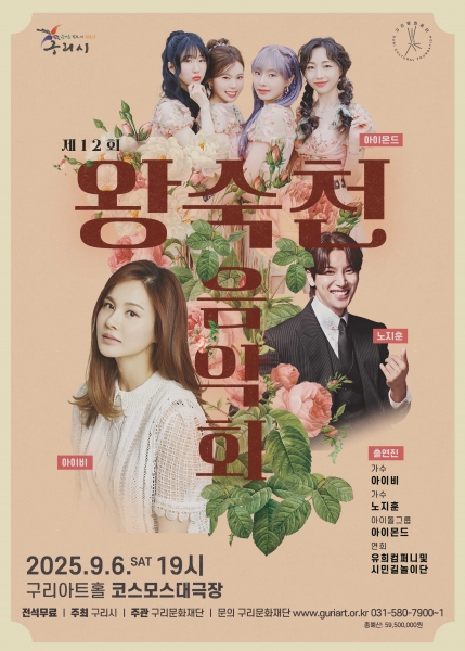 이번 음악회는 강채원 아나운서의 사회로 진행되며 구리문화재단 상주단체인 유희컴퍼니와 시민길놀이단의 무대를 시작으로 뮤지컬 디바로 활약 중인 가수 아이비, 트로트 가수 노지훈, 아이돌 그룹 아이몬드 등 다채로운 출연진이 무대를 꾸민다.