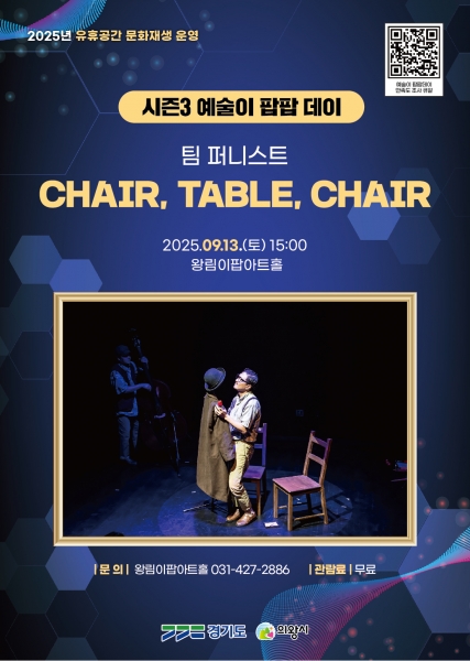 [금요저널] 의왕시는 오는 9월 13일 오후 3시 왕림이팝아트홀에서 팀 퍼니스트의 넌 버벌 퍼포먼스‘CHAIR, TABLE, CHAIR’ 공연을 선보인다.