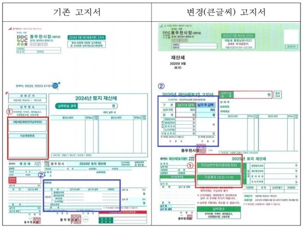 [금요저널] 동두천시는 9월 토지분 재산세부터 고령층과 저시력 납세자를 위한 ‘큰 글씨 지방세 고지서’를 제작·발송한다고 밝혔다.
