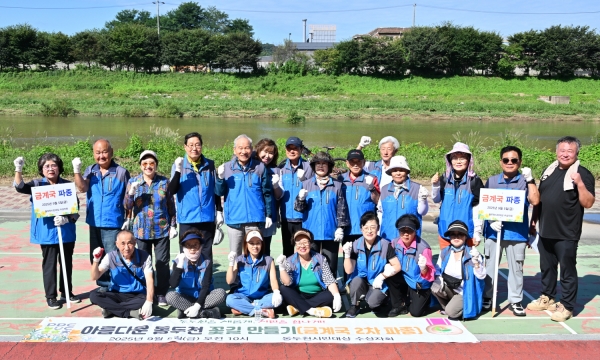 [금요저널] 동두천시는 신천변 산책로를 쾌적하고 아름다운 공간으로 가꾸기 위해 시민대상 수상자회와 협력해 금계국 꽃씨를 파종했다.