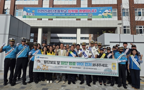 인천 서구, 신검단초등학교 등굣길 교통안전 기관합동 캠페인 실시