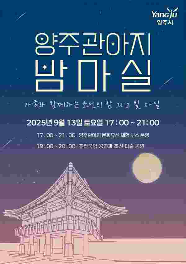 특히 9월 19일부터 21일까지 열리는 ‘양주 국가유산 야행’을 앞두고 미리 점등되는 경관조명도 함께 감상할 수 있어, 더욱 환상적인 분위기가 연출될 전망이다.