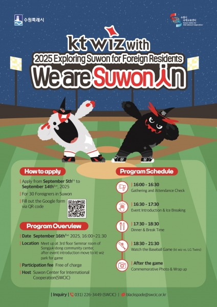 참가자들은 수원시 대학생 공공외교단과 함께 16일 수원KT위즈파크에서 열리는 kt위즈와 LG트윈스의 경기를 관람하며 한국 야구 응원 문화를 체험한다.