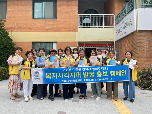 이번 캠페인은 사각지대에 놓은 위기가구 발굴을 위한 것으로 지역 주민들에게 안내문과 홍보 물품을 전달하며 주변에 생활이 어려워 도움이 필요한 분들을 발견하면 안중읍 행정복지센터로 적극 제보해 달라고 당부했다.