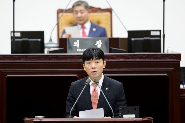 신성영 의원은 9일 열린 ‘제303회 임시회’ 제5차 본회의 5분 자유발언을 통해 “6·25 전쟁의 전세를 역전시키고 자유대한민국을 구해낸 인천상륙작전은 우리나라 현대사의 결정적 전환점”이라며 “기념식의 주인공은 참전유공자와 그 유족이어야 한다”며 집행부에 보훈행정 관련 개선을 촉구했다.
